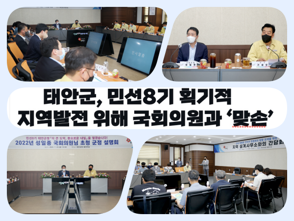 태안군이 민선8기 첫해를 맞아 군민 삶의 질 향상과 지역 현안사업 해결을 위해 지역구 국회의원과 머리를 맞댔다.
