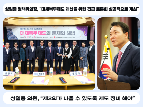 국민의힘 성일종 정책위의장, “대체복무제도 개선을 위한 긴급 토론회 성공적으로 개최” |