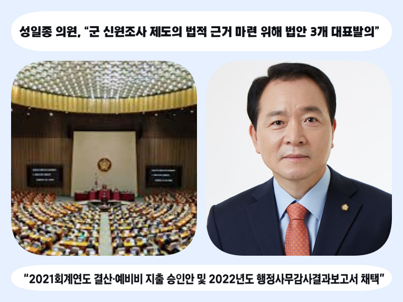 | 성일종 의원, “군 신원조사 제도의 법적 근거 마련 위해 법안 3개 대표발의” |