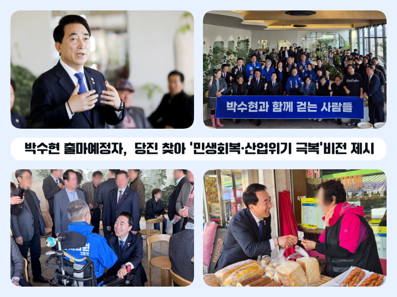 충남도지사 출마를 선언한 박수현 국회의원(더불어민주당 충남 공주·부여·청양)은 25일(수) 당진시를 찾아 상공회의소, 현대제철 노동조합, 전통시장을 찾아 소통하며, 민생회복과 산업위기 극복을 위한 지원을 아끼지 않겠다고 밝혔다.