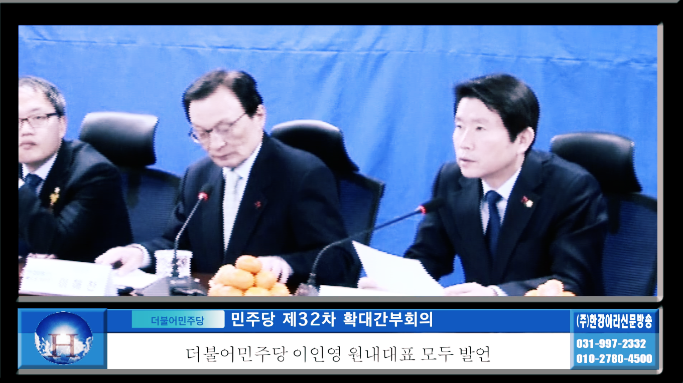 더불어민주당 이해찬 당대표는 2019.12.20(금) 오전 9시 30분 국회의원회관 306호실에서 "제32차 확대간부회의를 개최했다. 이 대표는 확대간부 개최 전 감귤 판촉행사도 실시했다. 모두발언은 이해찬 대표, 이인영 원내대표, 최고위 위원들도 함께 참여했다.